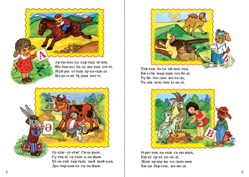 Оқу материалы қарапайым әрі көрнекі түрде ұсынылған: ірі әріптер, түсінікті сөздер, жарқын иллюстрациялар және жүйелі құрылым. Мұндай формат баланың қызығушылығын арттырып, оқуға деген ынтасын қалыптастырады.