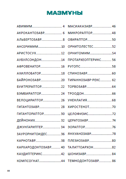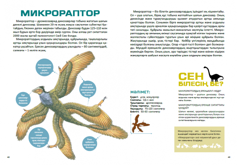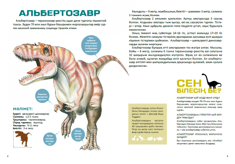«ДИНОЗАВРЛАР. Жыртқыштар» энциклопедиясын оқи отырып, бір кезеңде күллі әлемге «билігін жүргізген» ғажап жыртқыш хайуандар жайлы қызықты мәліметтермен танысатын боласыз.