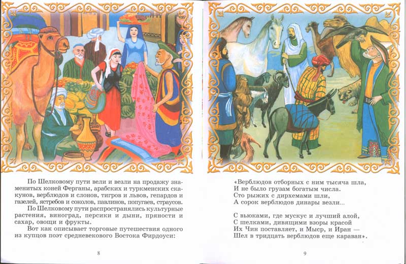Великий шелковый путьНазвание "Великий шелковый путь" - это не древнее название, оно появилось лишь в 1877 г. и придумал его известный немецкий географ Фердинанд фон Рихтгофен. Шелк, изобретенный в Китае, был главным предметом торговли, он и определил название пути. Ұлы Жібек жолы ежелгі атау емес, ол 1877 жылы пайда болған. Оны қолданысқа енгізген белгілі неміс географы Фердинанд фон Рихтгофен. Жолдың бұлай аталуына сауданың негізгі заты Қытайдан шығарылатын жібек мата себеп болды. |