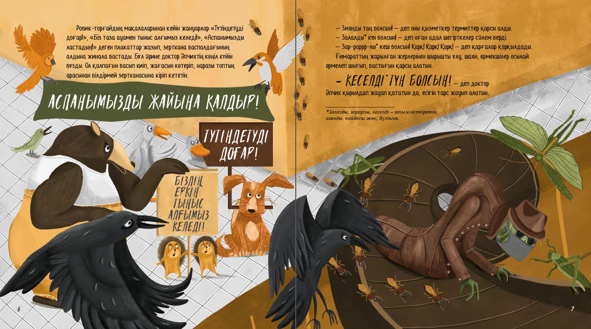 Балаларға арналған «Батылдар заманы» топтамасы экология мәселесін қамти-ды. Топтаманың екінші кітабы «Доктор Әпчих және оның қорқынышты құпиясы» деп аталады. Бұл кітап жас оқырмандарымызға жаһандық жылыну, шөлейт тену қаупі, парниктік газдардың зияны туралы әңгімелейді.